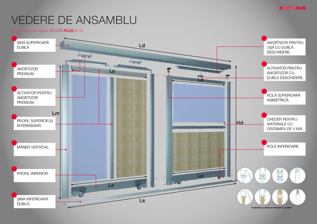 dublă deschidere, pentru ușă cu greutatea între 25 - 50 kg