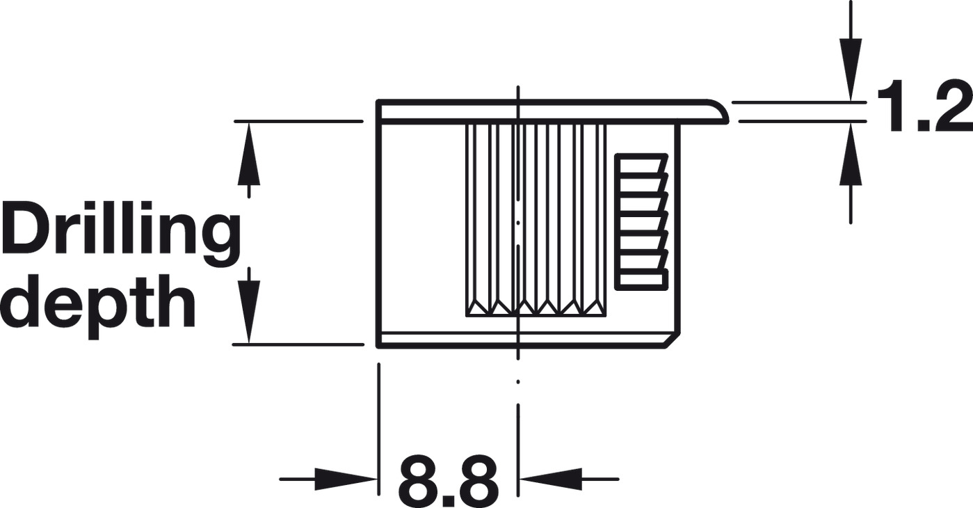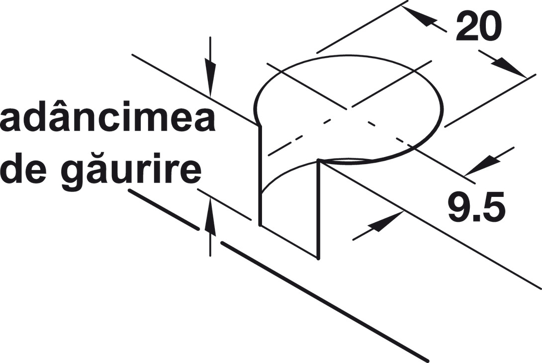 Pentru o grosime a lemnului de 19 mm, adâncimea de găurire D: 14,2 mm, dimensiune A: 9,5 mm, alb aluminiu