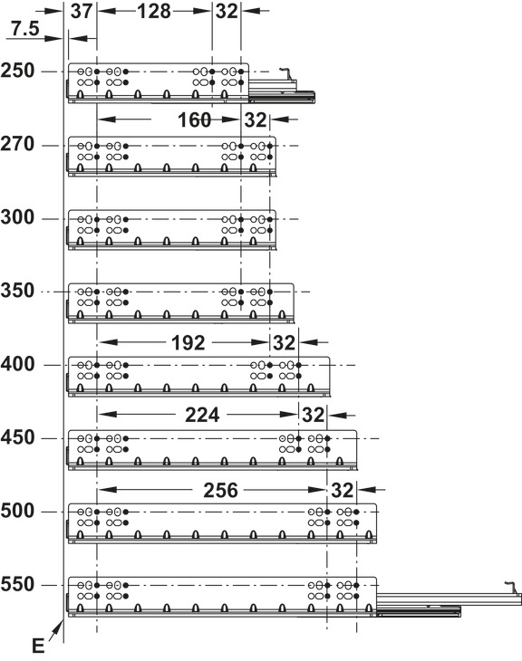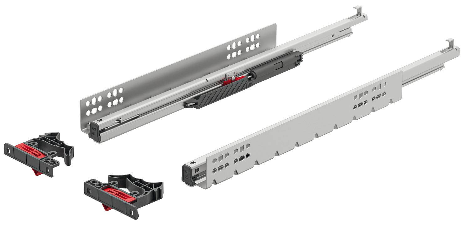 Häfele Glisiere sub sertar Matrix UM S30, 450 mm, extragere totală, cuplaje fixare sertar cu reglaj 1D, cu mecanism amortizare și autoinchidere