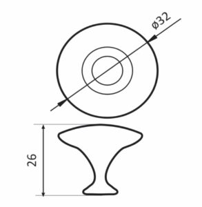 Diametru buton - 32,00 mm Înălţime - 26,00 mm Materie primă - aliaj Zinc Se livrează cu șurubul de fixare.